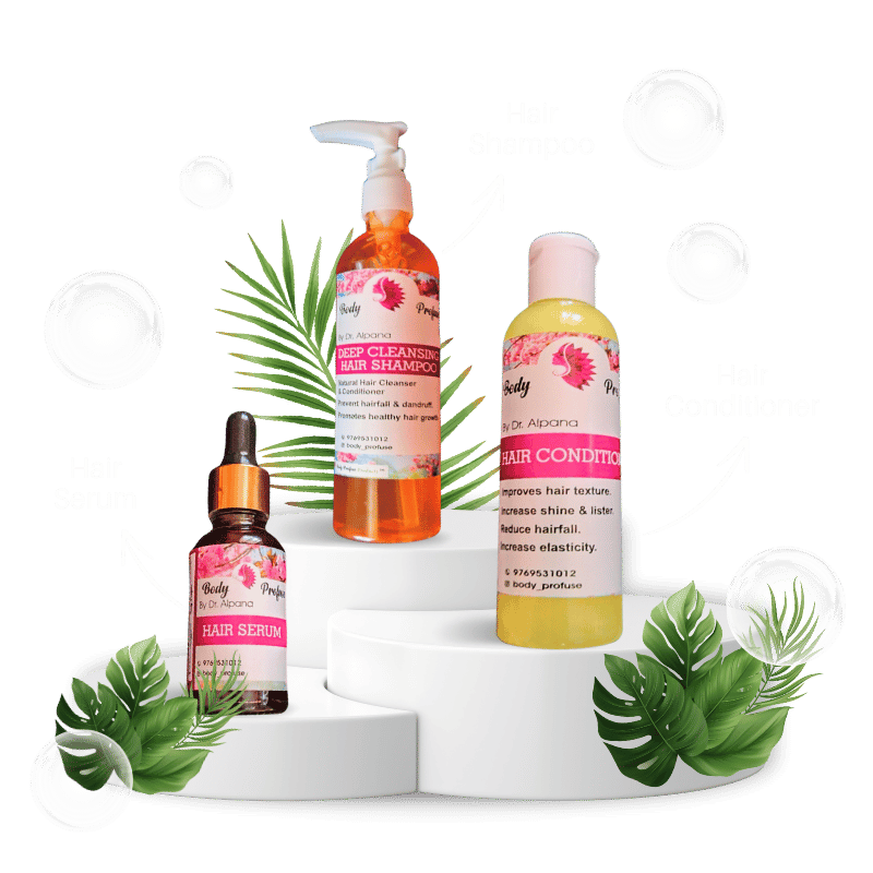 Complete Hair Care Regimen Discover our comprehensive hair care regimen designed to nourish, strengthen, and protect your hair. Start with our Deep Cleaning Hair Shampoo, infused with almond extracts to deeply nourish and reduce hair fall while promoting scalp health. This shampoo effectively cleanses, leaving your hair refreshed and revitalized. Enhance your hair's texture and shine with our Hair Conditioner, formulated to increase elasticity, reduce frizz, and restore moisture balance. Smooth and polish your strands for a sleek, healthy-looking appearance. Complete your routine with our Hair Serum, crafted to hydrate, smooth frizz, and protect against environmental stressors. This serum adds a brilliant shine while providing a protective barrier against humidity and pollution. Experience the transformative benefits of our meticulously crafted hair care products, designed to leave your hair looking and feeling its best. Nourish your hair with our advanced formulations and achieve a radiant, healthy-looking mane that reflects your natural beauty.